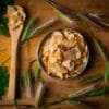 El ajo es parte esencial de nuestras cocinas, puesto que su aroma y sabor enriquece considerablemente nuestras preparaciones. Este particular formato, obtenido al picar en láminas los ajos deshidratados, no contiene agua, por lo que es necesario hidratarlo en caso de que quieras llevarlo al sartén.